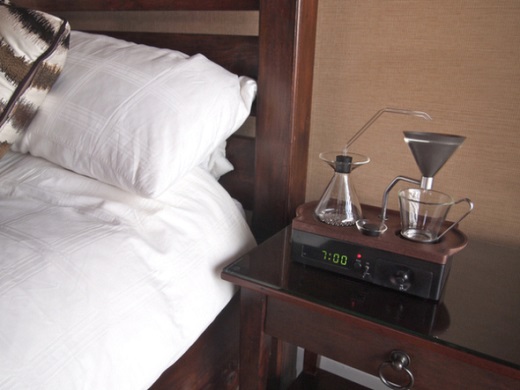 Η ιδέα αυτή παρουσιάστηκε στην έκθεση “New Designers 2014” και ουσιαστικά πρόκειται για ένα ιδιαίτερο ξυπνητήρι που ξεκινά να σου φτιάχνει καφέ όταν αρχίζει να χτυπά. Στη βάση βρίσκεται ένα κλασικό ψηφιακό ρολόι, αλλά στην επάνω πλευρά υπάρχει διάταξη, όπου ζεσταίνεται το νερό και φιλτράρεται με τον καφέ μέσα σε γυάλινη κούπα, ενώ έχουν τοποθετηθεί και δύο μικρά συρτάρια για ζάχαρη και κρέμα.
